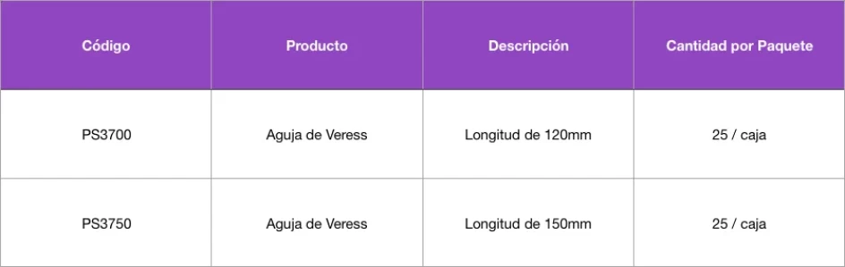 Las Agujas de Veress de Purple Surgical están diseñadas para una creación simple, segura y efectiva del neumoperitoneo
