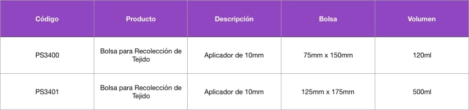 La bolsa para Recolección de Tejido de Purple Surgical ofrece la solución con el mejor costo/beneficio para asegurar una muestra de tejido segura.