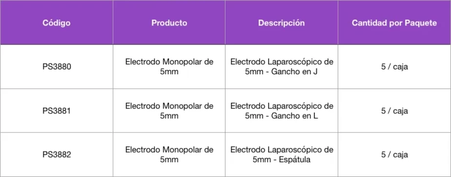 - Este instrumento, al ser de un solo uso, garantiza esterilidad y una activación electroquirúrgica monopolar efectiva